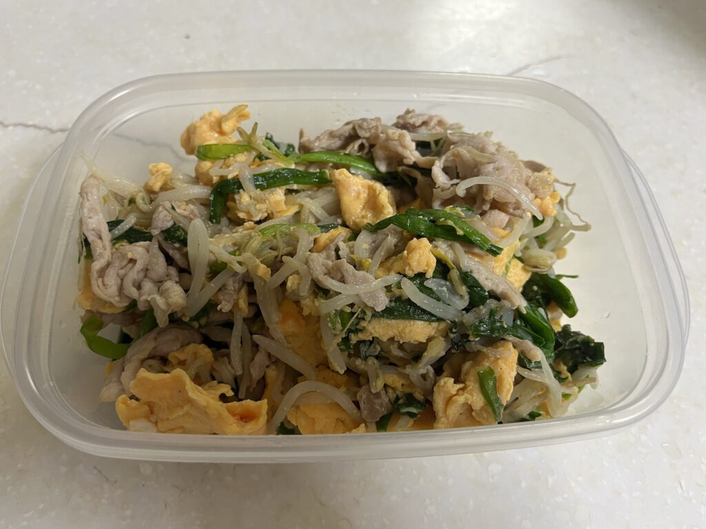 もやしのシャキシャキ感が欲しい人は、5の卵の後にもやしを入れても可。
